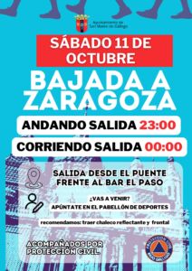 09Oct2025 Bajada tradicional andando al Pilar. Inscripciones en el pabellón de deportes. Recomendable llevar chaleco reflectante y frontal Ver cartel