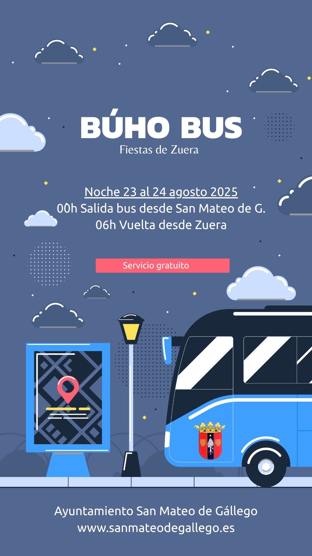 23Ago2025 Búho a Zuera. Salida la noche del 26 al 27 desde la parada de bus frente al paso a las 00h. Vuelta a las 6h desde Zuera Ver cartel