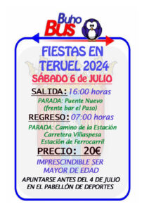04Jul2024 Lugar: San Mateo de GállegoAutobús San Mateo de Gállego - Teruel. Inscripciones y pago en efectivo en el pabellón de deportes hasta el 4 de julio 2024 Ver cartel