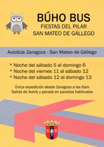 12Oct2024 Lugar: Zaragoza-San MateoAutobuses Zaragoza-San Mateo para volver de las Fiestas del Pilar Ver cartel y horarios