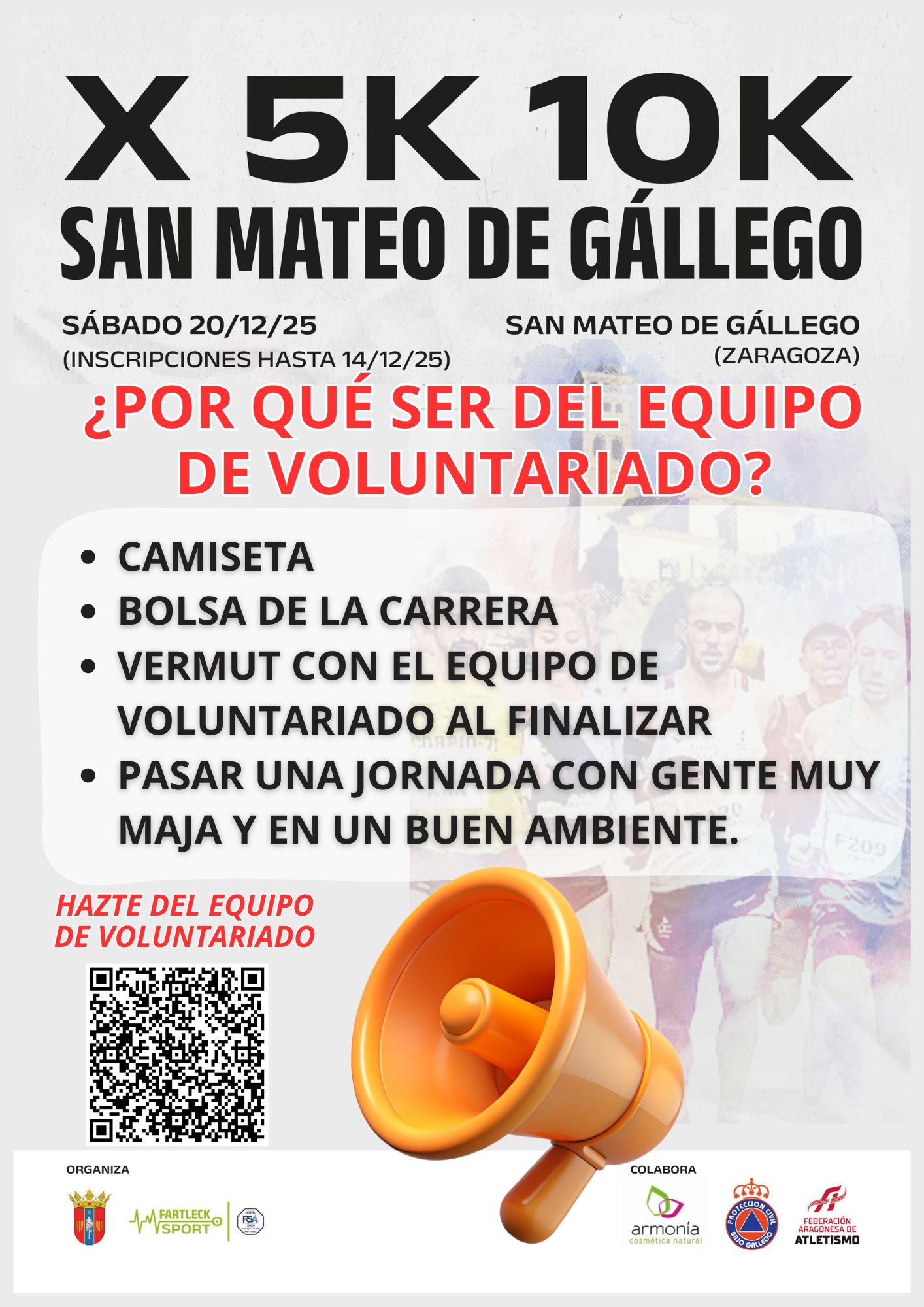 ¡Hazte voluntario/a de la Carrera 10k. que se celebra el próximo día 20 de diciembre en San Mateo!