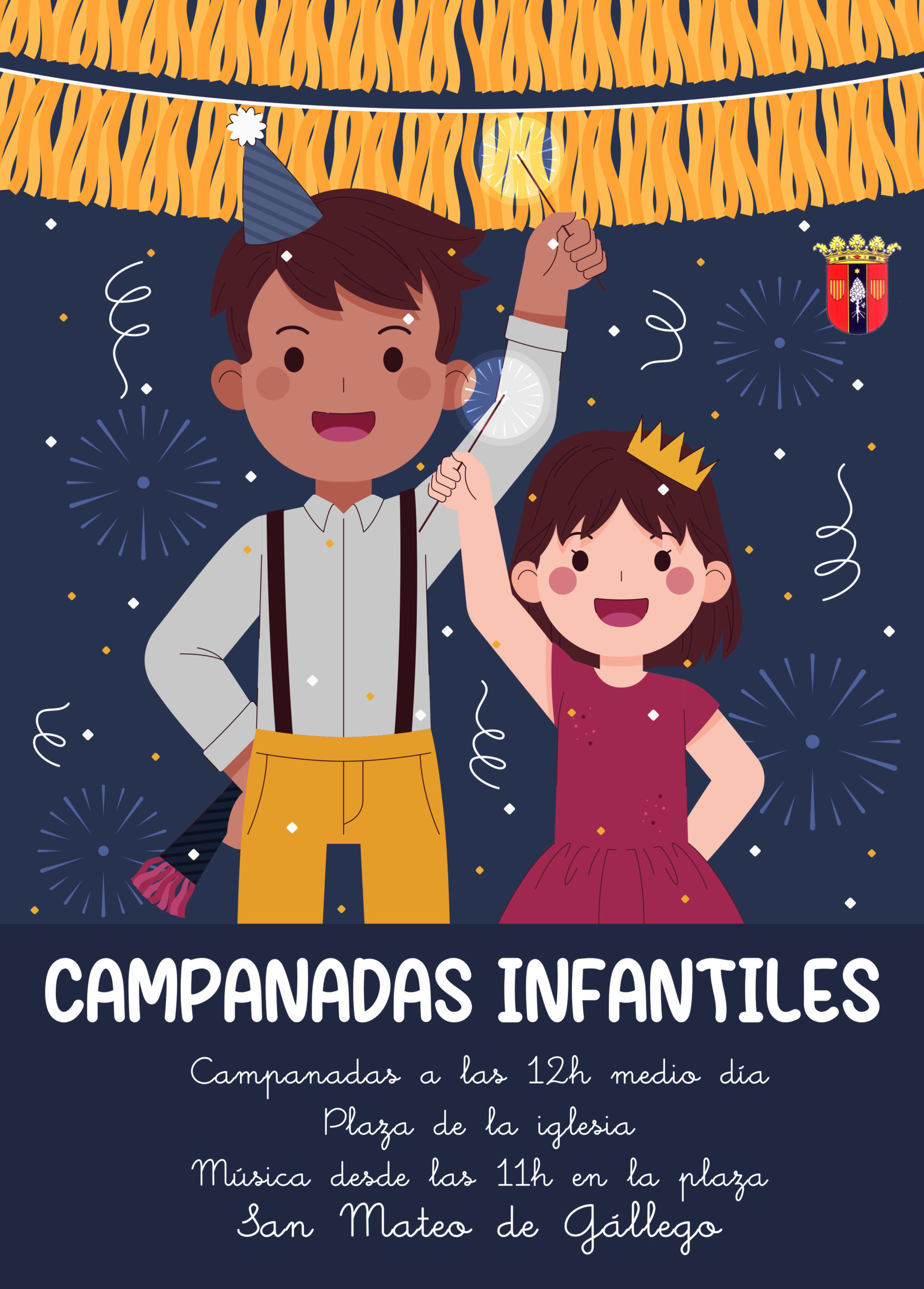 31Dic2023 Campanadas infantiles 2023Desde 11.00h hasta 12.30hLugar: Plz. de la IglesiaCampanadas infantiles a las 12h, de la mañana. Música desde las 11h en la Plaza de la Iglesia Ver cartel