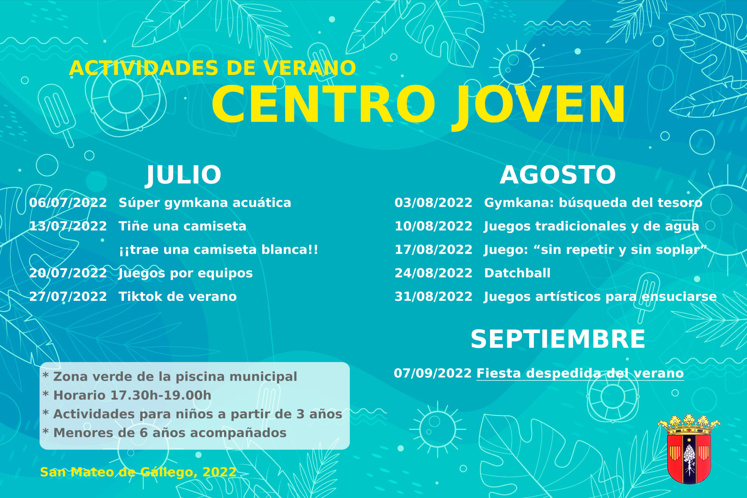 Programación de las actividades del Centro Joven durante el verano 2022.