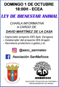 Charla sobre la Ley de bienestar animal en San Mateo de Gállego, a cargo de David Martínez de la Casa.