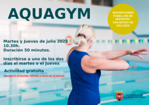 01Jul202526Jun2025 Desde 10.30hLugar: piscinas municipalesInicio de clases de aquagym martes y jueves a las 10.30h. Clases gratuitas de 50min para usuarios de la piscina municipal. Fechas a elegir entre martes o jueves del mes de julio. Ver cartel