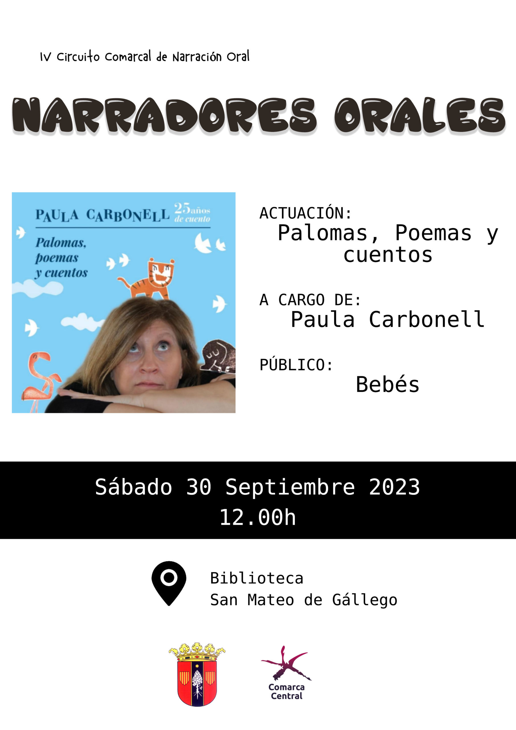 Sábado 30 de septiembre 2023, 12h con Paula Carbonell "Palomas, poemas y cuentos".