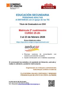 Más información y matrícula en Avda. Galo Ponte, 60 - 976 68 31 36 y en educaciondeadultos@sanmateodegallego.es.