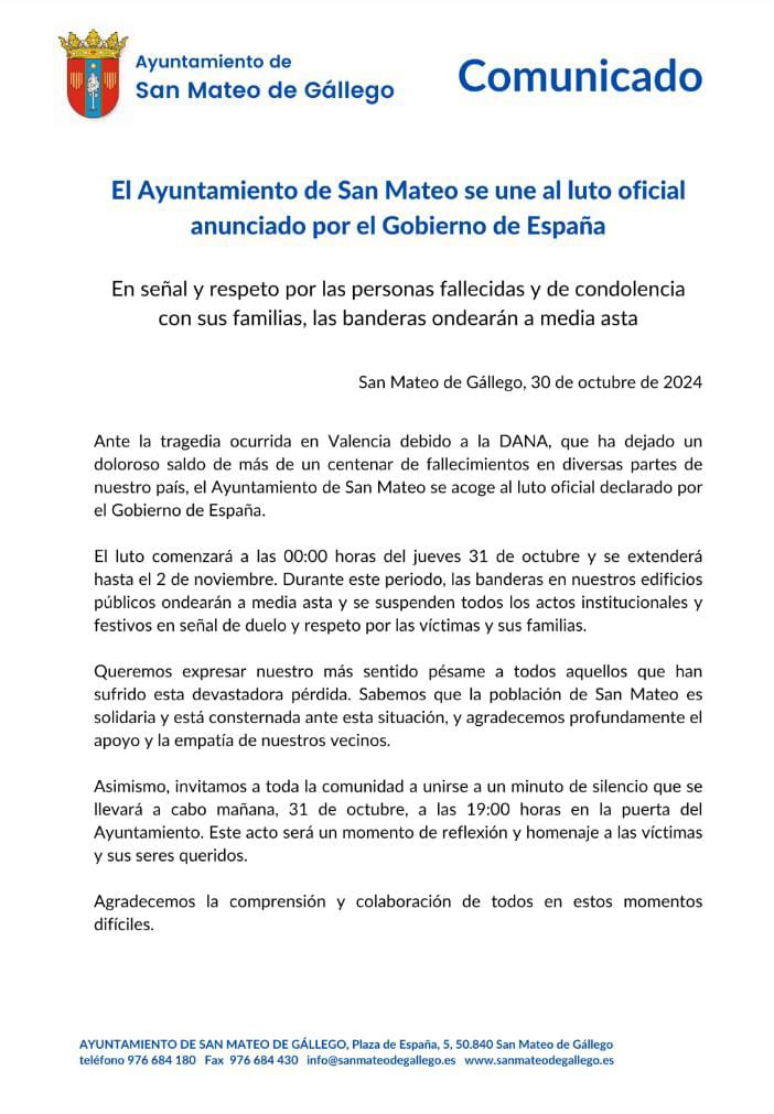 Debido al Real Decreto de Luto anunciado por el gobierno de España ante la desgracia de Valencia, se aplazan las actividades.