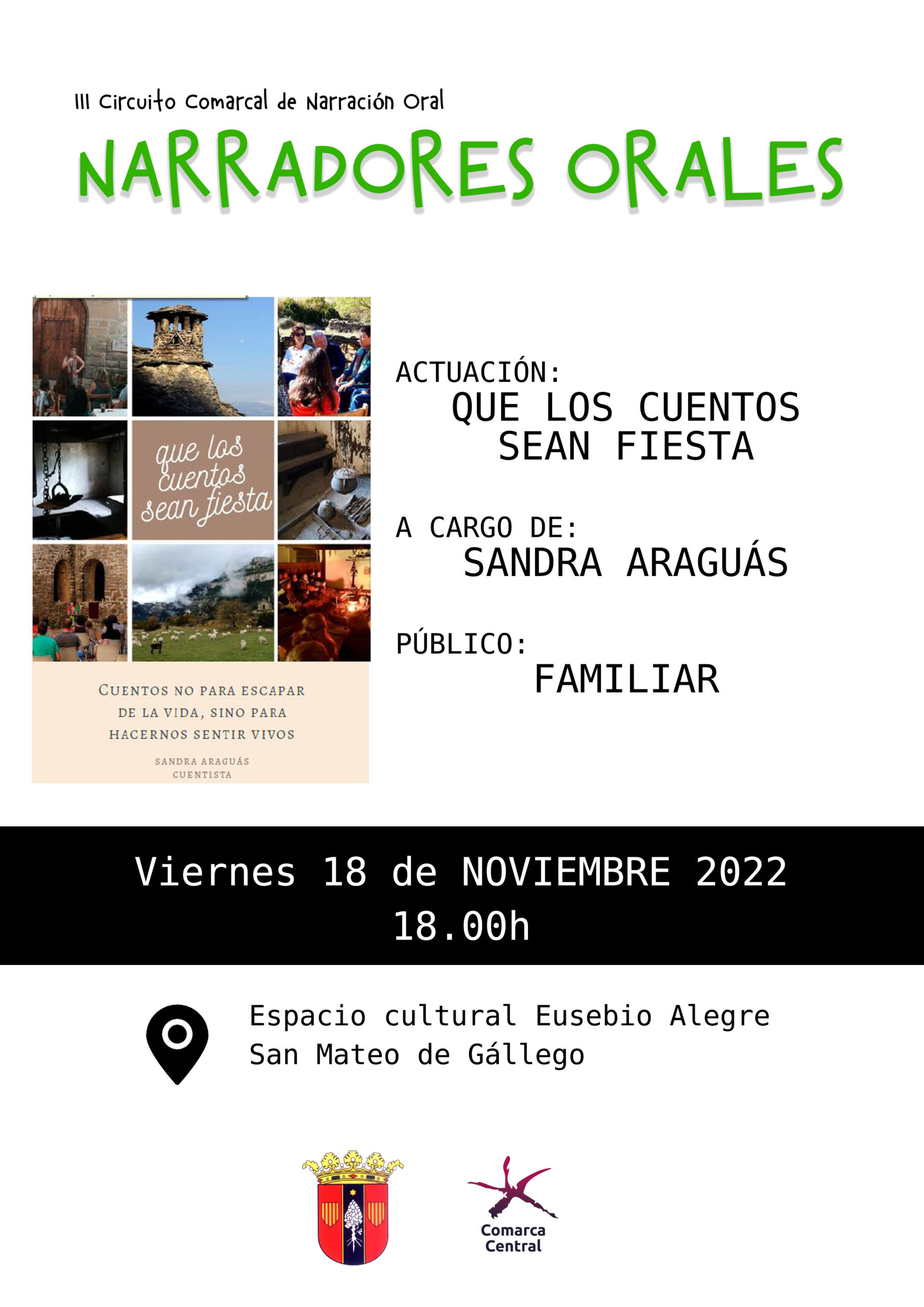 Actuación en el Espacio Cultural Eusebio Alegre a cargo de Sandra Araguás: "Que los cuentos sean fiesta". Para público familiar, el viernes 18 de noviembre a las 18h