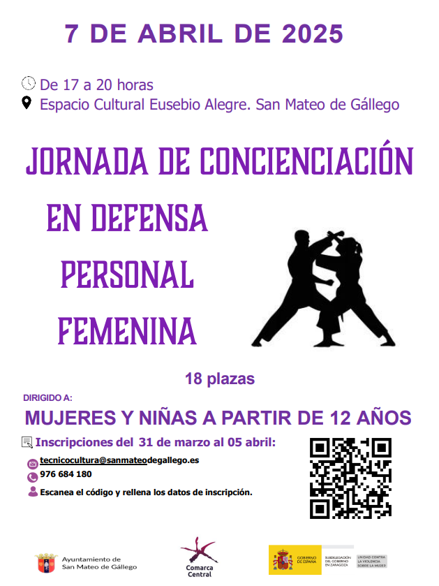 Jornada de concienciación en Defensa Personal femenina. Dirigido a mujeres y niñas a partir de 12 años, de 17h a 20h en el ECEA