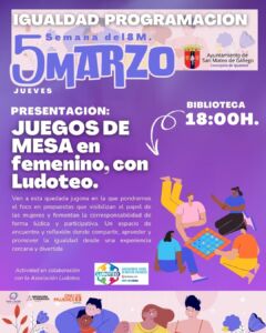 Donde jugaremos a diferentes juegos de mesa en los cuales se visibilizan el papel de la mujer y se fomenta la corresponsabilidad.