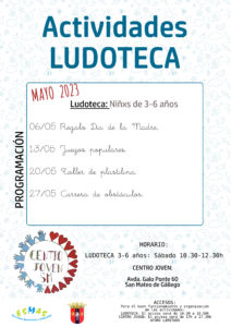 Actividades para niños 3-6 años los sábados por la mañana en el espacio de la ludoteca en el Centro joven
