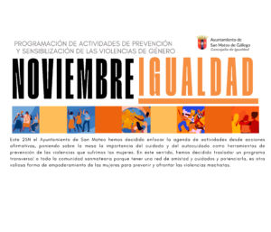 15Nov202325Nov2023 Programa de actividades Lugar: San Mateo de GállegoGratuitoPrograma de actividades de prevención y sensibilización de las violencias de género Ver programación completa