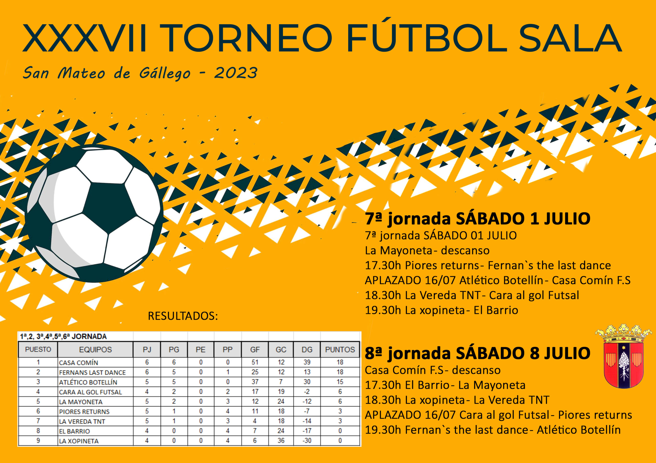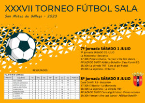 01Jul2023 Desde 17.30hLugar: Pabellón de DeportesVer cartel https://sanmateodegallego.es/wp-content/uploads/2023/06/torneo-futbol-sala-2023-7-8-jornada-scaled.jpg