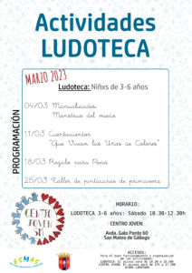 03Mar202331Mar2023 Centro Joven - LudotecaActividades de marzo de la Ludoteca de San Mateo de Gállego ver cartel