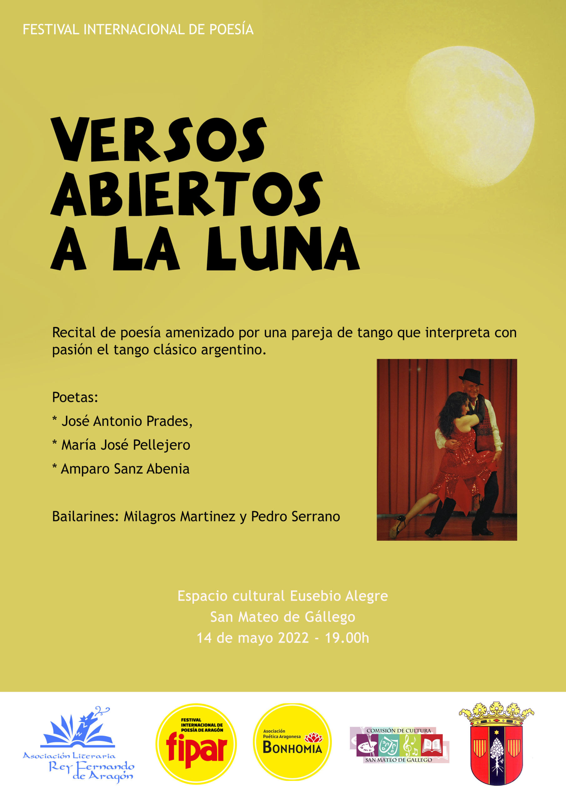 14May2022 Recital de poesíaDesde 19.00hRecital de poesía acompañado por una pareja de Tango Argentino 14 de mayo - 19h - ECEA (Espacio cultural Eusebio Alegre) Ver cartel