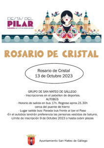 13Oct2023 Rosario de CristalSalida grupal al Rosario de Cristal. Autobús desde San Mateo el 13 de octubre a las 17h. Regreso 21.30h desde puente de Hierro Ver cartel