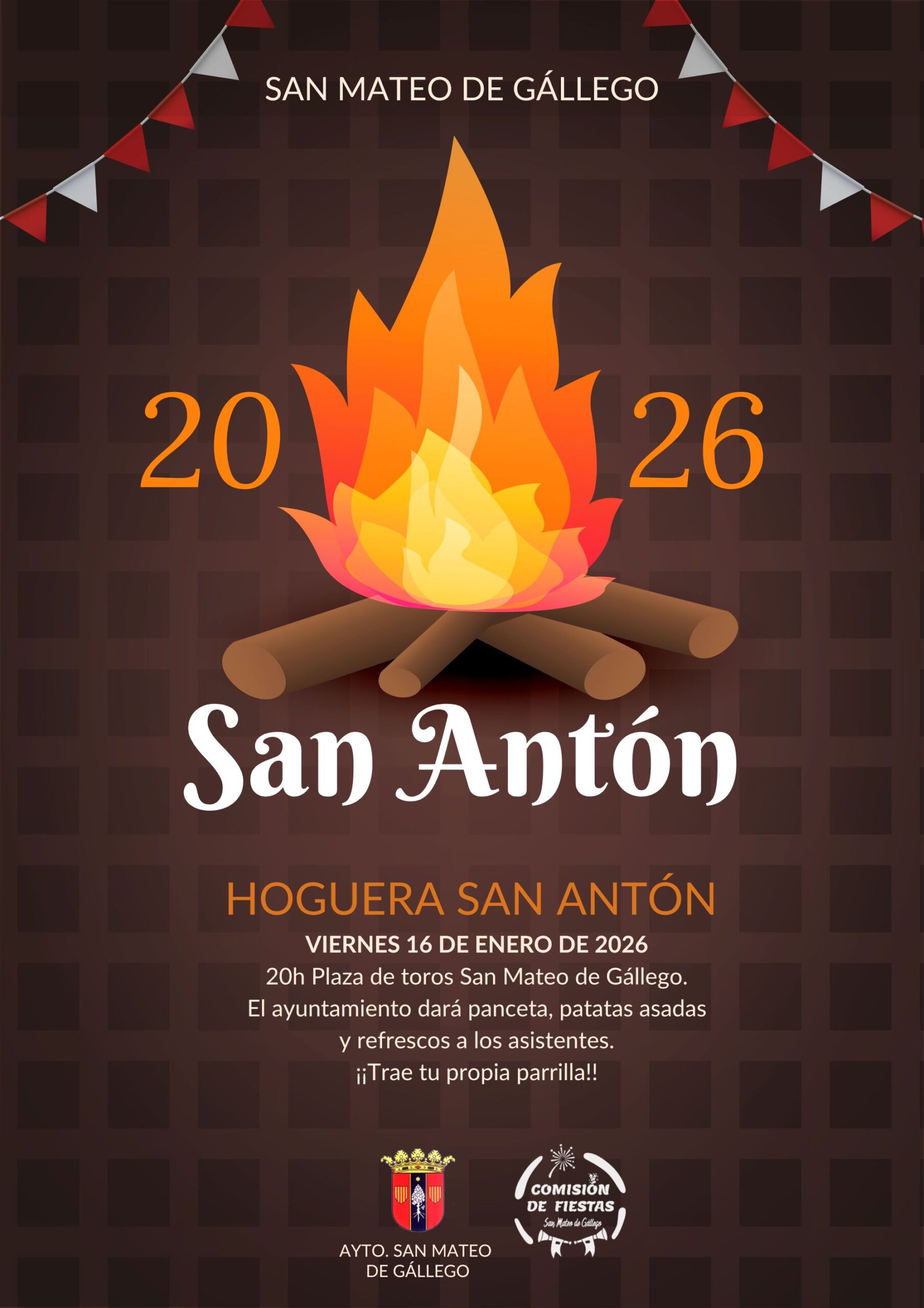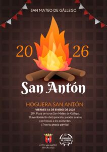 16Ene2026 Lugar: Plaza de TorosgratuitoCelebraremos San Antón el próximo viernes 16 de enero, con la tradicional hoguera en la plaza de toros de San Mateo de Gállego. ¡No os olvidéis de la parrilla! Ver cartel