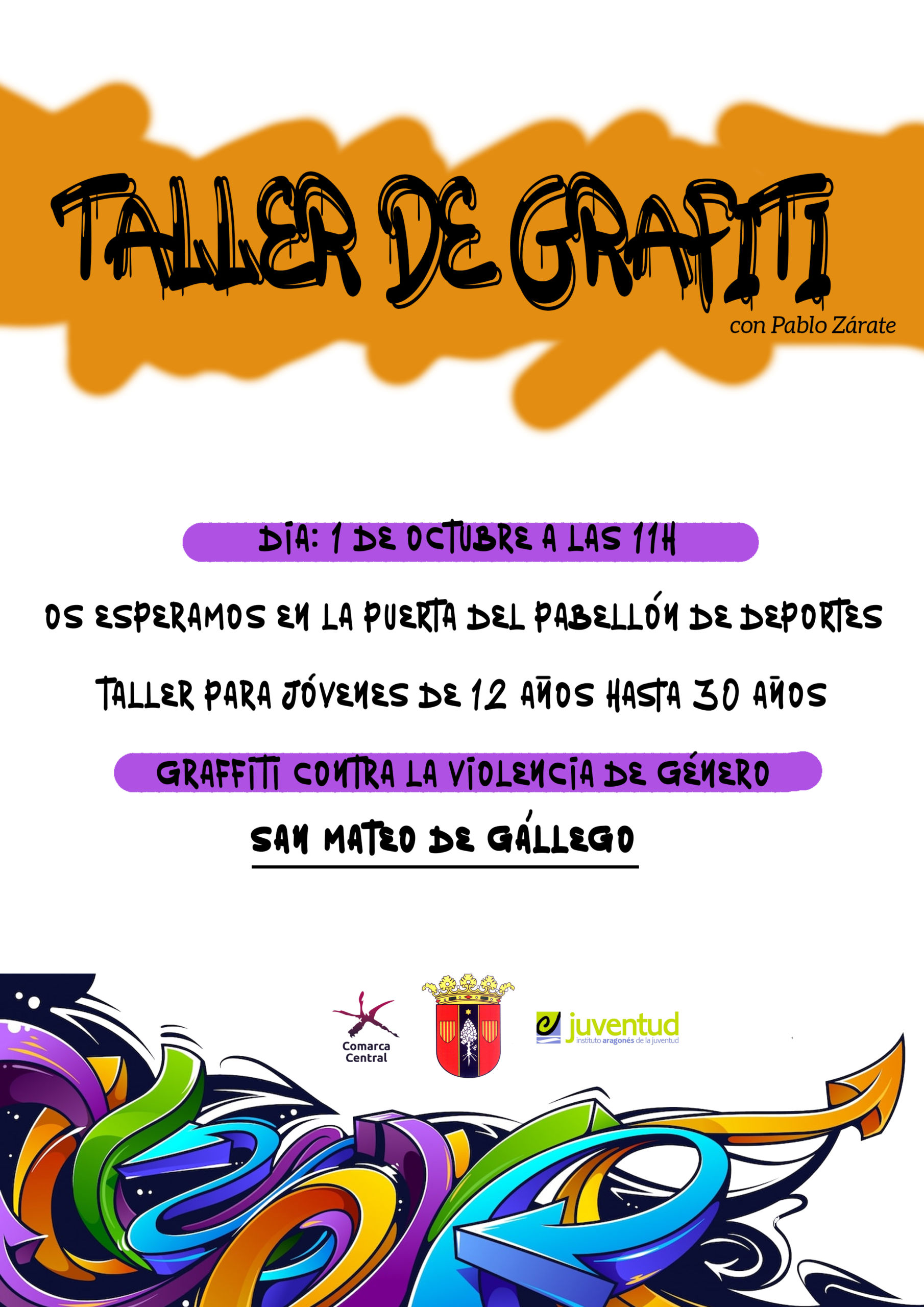 Taller de grafiti para jóvenes a partir de 12 años. Actividad organizada por la Comarca Central de Zaragoza y el Instituto Aragonés de la Juventud.